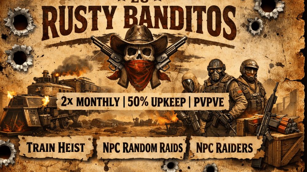 EU RustyBanditos 2x Monthly|50%UpKeep|SoloDuoTrioQuad|PvPvE